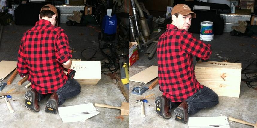 I so want to plant with the wine boxes. I read not to forget to lacquer the boxes or at least apply a wood stain to help prevent water damage. And you gotta have that manfriend to help out. One, good eyecandy and two, makes the project 10 x easier … on my part. 😉
