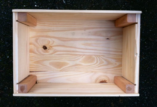Those 4 wooden pegs were nailed in to keep the sides from splitting. Now the box is ready to go. Next step-Drill holes in the bottom for drainage.