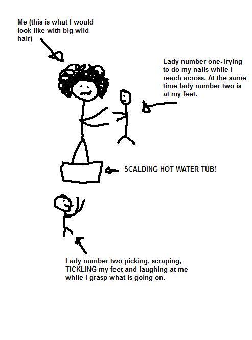 this is hysterical!! I HATE getting mani/pedis – my feet are too ticklish! LOL! I end up kicking everyone – so for the safety of all I just don’t go – plus I didn’t find it very relaxing either! LOL!
