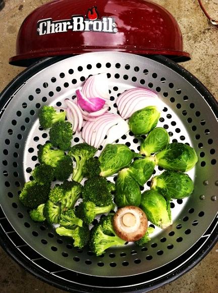 Widdle baby. Perfect sized grill for a ton of veggies, and a couple bean burgers. This has been dubbed as the “veggie grill.” No animal meats will ooze onto this grill. The meal that broke Char-Broil Charlie in was veg-tastic.