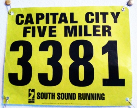 Now before you get your pants into an excited bunch, I did NOT run a marathon. I ran a 5 miler. The capital city marathon had three races: a marathon, a half-marathon, and a 5 miler. Due to the fact that there was a marathon and a half going on, this meant a real swag bag. None of those paper envelopes filled with a running chip and a race number. The shirt was a tech shirt, not cotton. I was in running heaven.