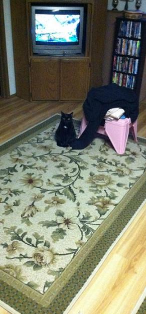 Observing his prey (aka me while I am running..what a creep!) Also please don’t be jealous of my TV circa the 1700’s.