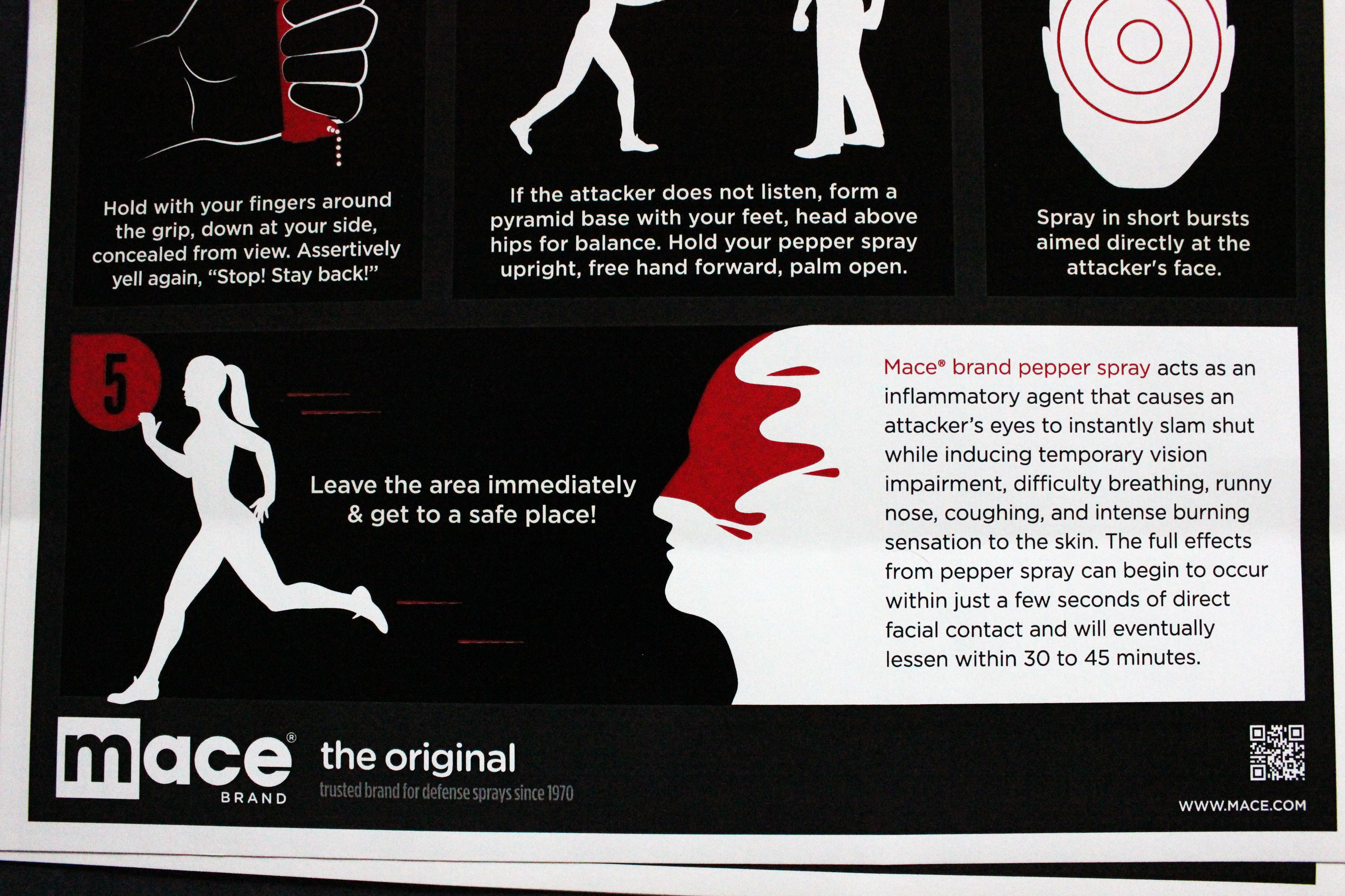 my boyfriend, who is former military and in the process of becoming a cop, keeps telling me that i should start carrying mace…i really feel like i would end up spraying myself in the face though. it’s a great idea for running though because i’ve always found running trails to be very creepy…