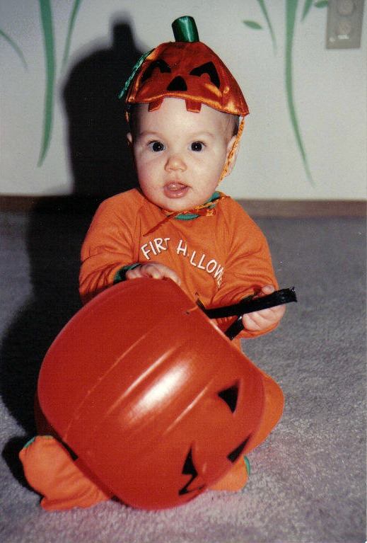 Note: I did not come out looking like this. I was 8 mo. here, and already loving everything Halloween.