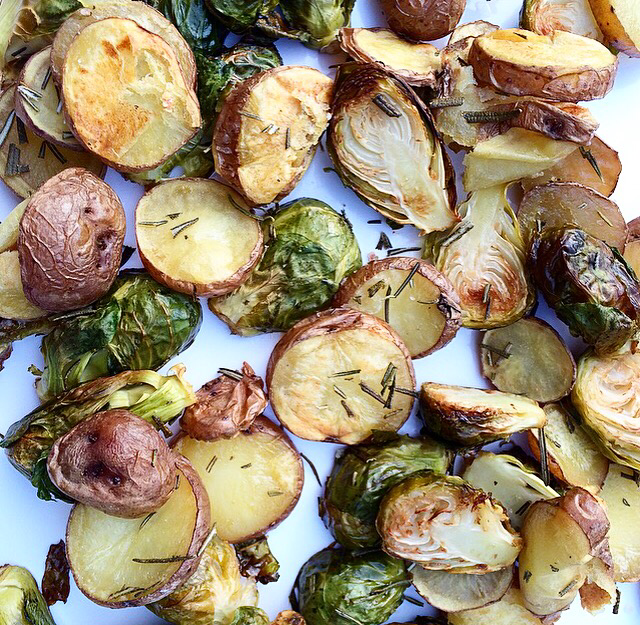 I’m a chips gal. Especially now that I’m working a desk job. Munching carrots alllll day isn’t the same as chips. Those potatoes and brussels look amazing!! You have rosemary growing already? That last bowlful dates, coconut, raw cacao, peanuts?! What’s all in there? It looks amazing!!!!