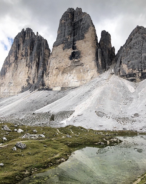 Upon arrival at the Drei Zinnen Hütte coming from a counterclockwise loop (the popular route) is where we found the first real expansive view of the three peaks in all their glory. I am not a climber, and I don’t think I ever will be (my few experiences on very thin and sketchy trails have proven this to me), but I can only imagine what the views are like from the tops of those peaks. The weather was perfect this day, a mix of sun and slight overcast.