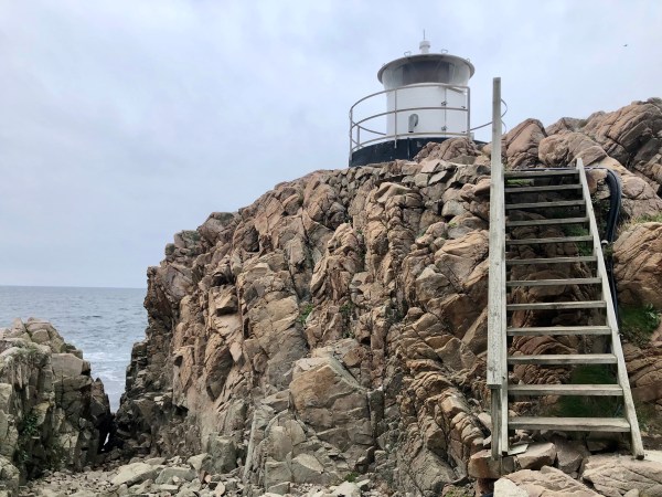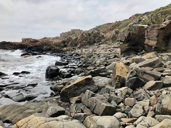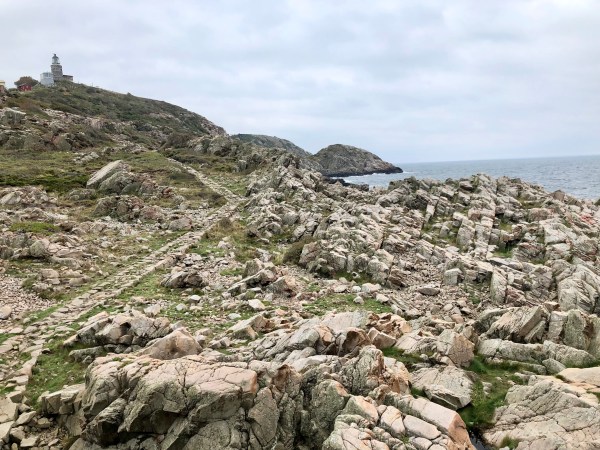 I was enamored by these jagged rocks and the crashing waves from the sea. I could have sat here all day. We didn’t have a solid plan, but we knew there was a lighthouse at the very tip of the nature reserve, so this was our first destination. We ended up walking around the rocks for a while because I wanted to get closer and closer to the water. We walked down to a tiny lighthouse of sorts which provided a better view of the large lighthouse on the hill.