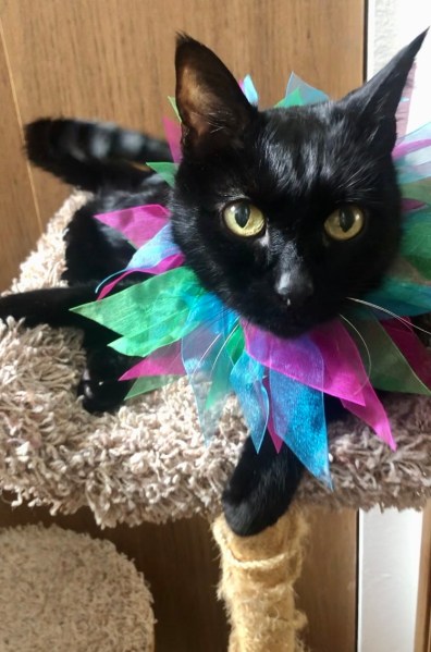 My tuxedo kitty, Beau, is jealous of Little’s celebratory collar!