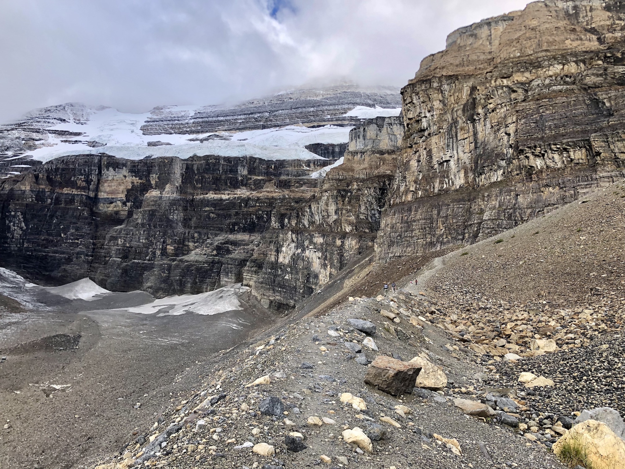 After skipping the tea house we pushed on to the Plain of Six Glaciers viewpoint (shown in the previous photos.) This brought us to a series of glaciers tucked into the mountain walls, and was a beautiful start to our looped trail. We sat here for a bit and enjoyed our first snack while laughing about our knuckleheadedness of not having cash.