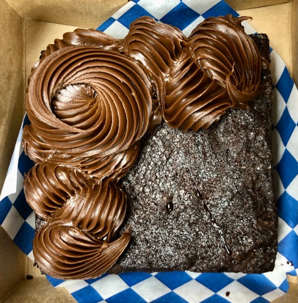This delicious dark square is the gluten free brownie from Bella Bella Bakery. Do not let the gluten free label scare you, my entire family (and Duncan) GOBBLE THESE UP. Gosh they’re good.