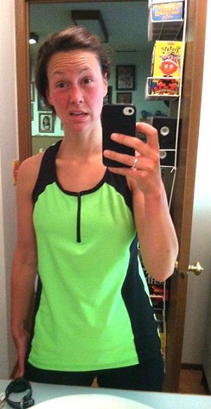 The temperatures have been in the upper 80’s, low 90’s lately and that makes for some VERY hot runs. I tried to portray how sweaty I was after a 5miler the other day, but instead I just look like a deer in headlights. “A” for effort.