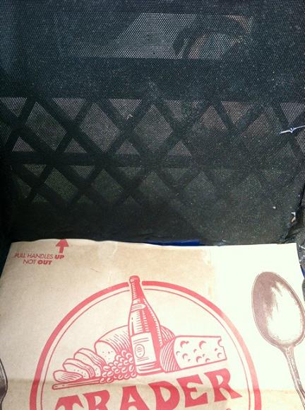 Oh surprise, I used a TJ’s bag. You’ll need a sturdy paper bag to lay on the bottom of the bin. Eventually this will compost into your soil, but it will take time and lets the food break down first.