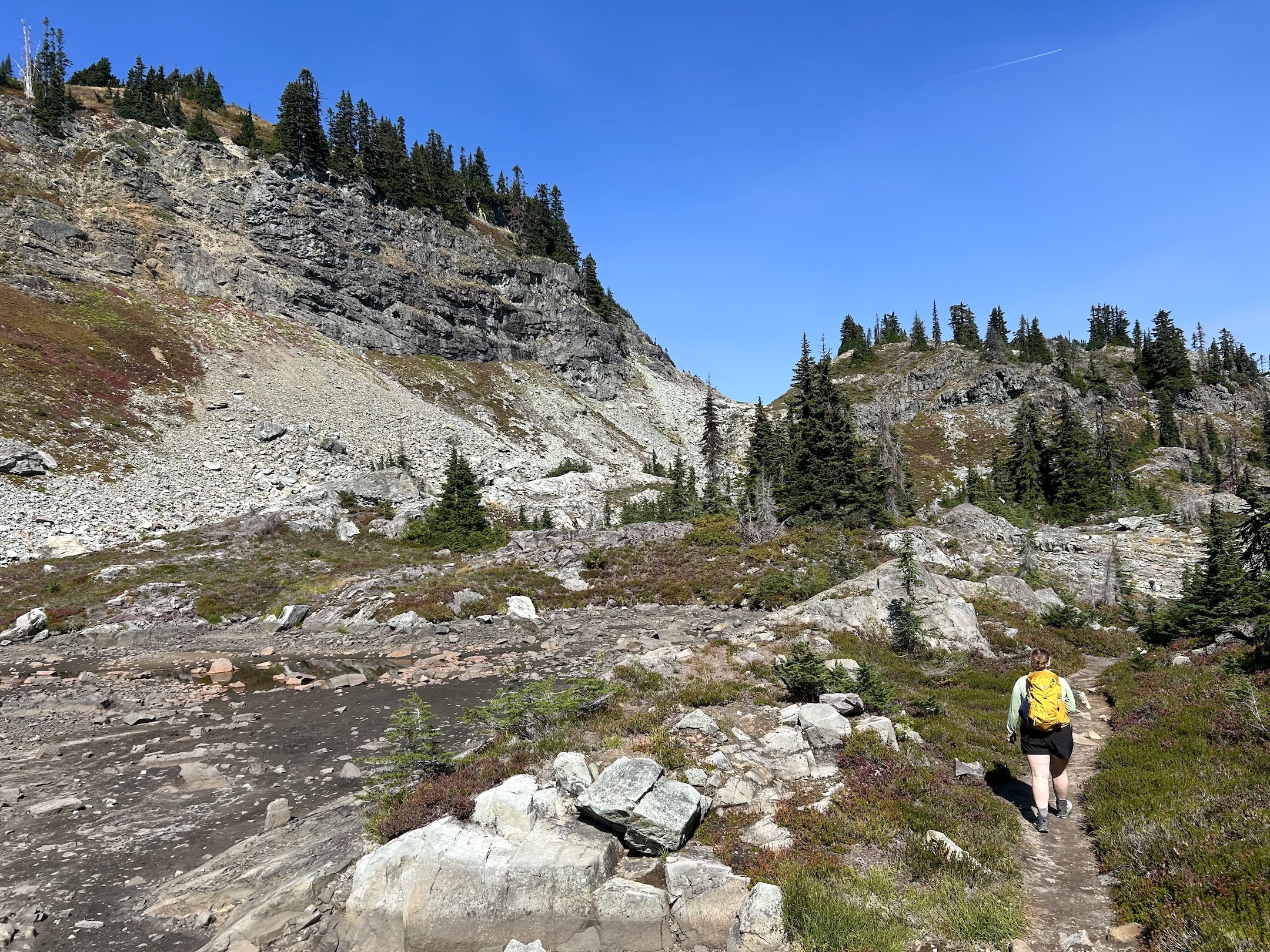 I made sure to hike this trail during a high energy week of my cycle, but little did I know this would not make a difference. This was just as hard as it was the first time I hiked it, and it will be another couple years before I go again. The trail from the parking lot to Rachel Lake is non stop climbing over roots and stumps and big steps that were rough on the entire body going up and going down.