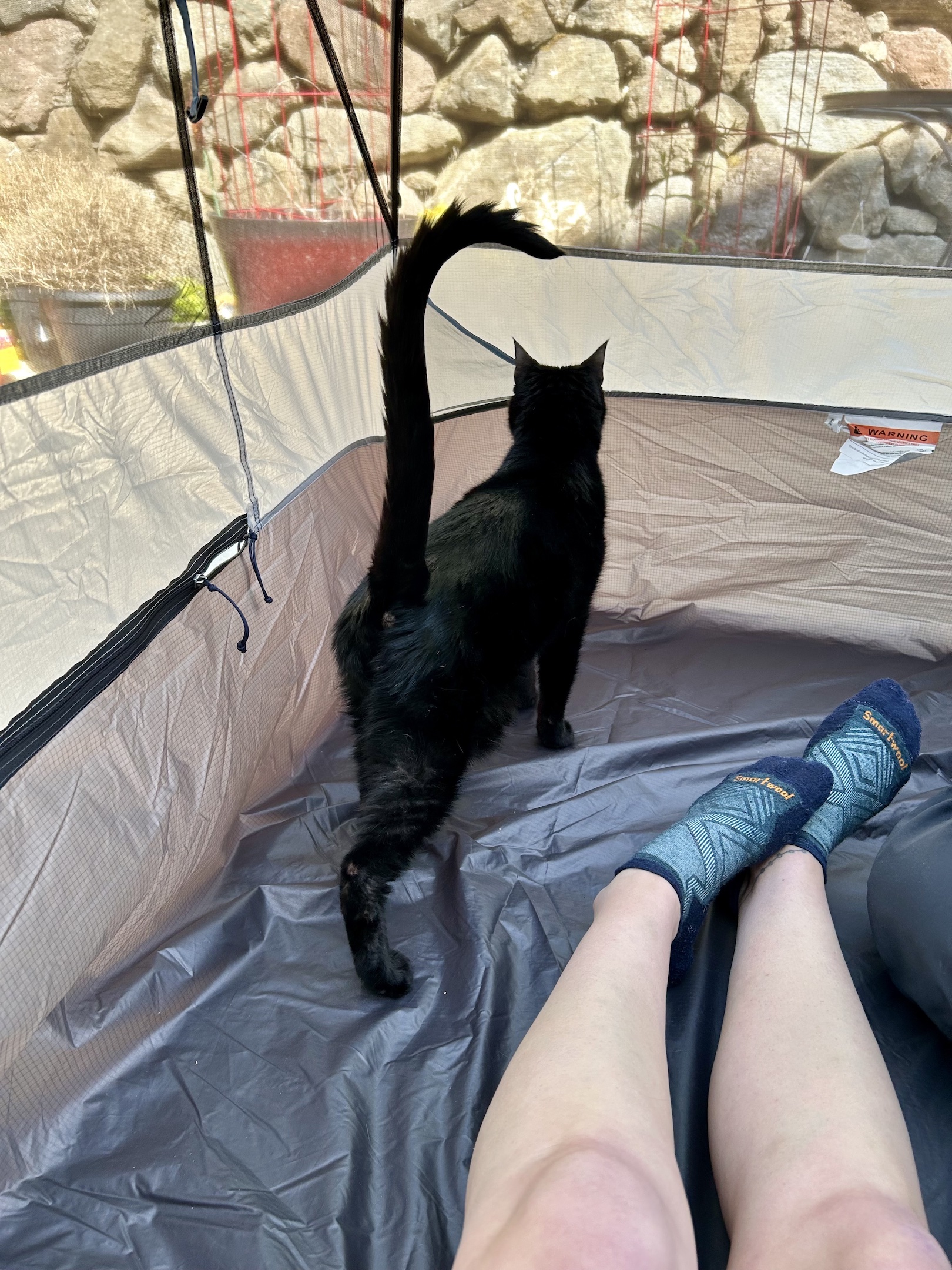I was able to snag a two person tent recently for a FRACTION of the cost. The people who returned it literally used it once and thought it was too heavy (they likely wanted it for backpacking.) I set it up in my backyard to see how Little liked it. He approves.