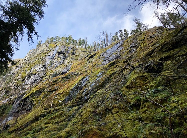 While I knew we would be walking on a road to get to the overlook, I had no idea it was because the road had been washed out. The hike starts at the Madison Falls parking area, and a short, moderately steep bypass trail took us around the washed out section. This is the only area of the hike within the woods adjacent to the road, but I enjoyed walking on the old road significantly more. Strictly for the abandoned buildings and overgrown brush.
